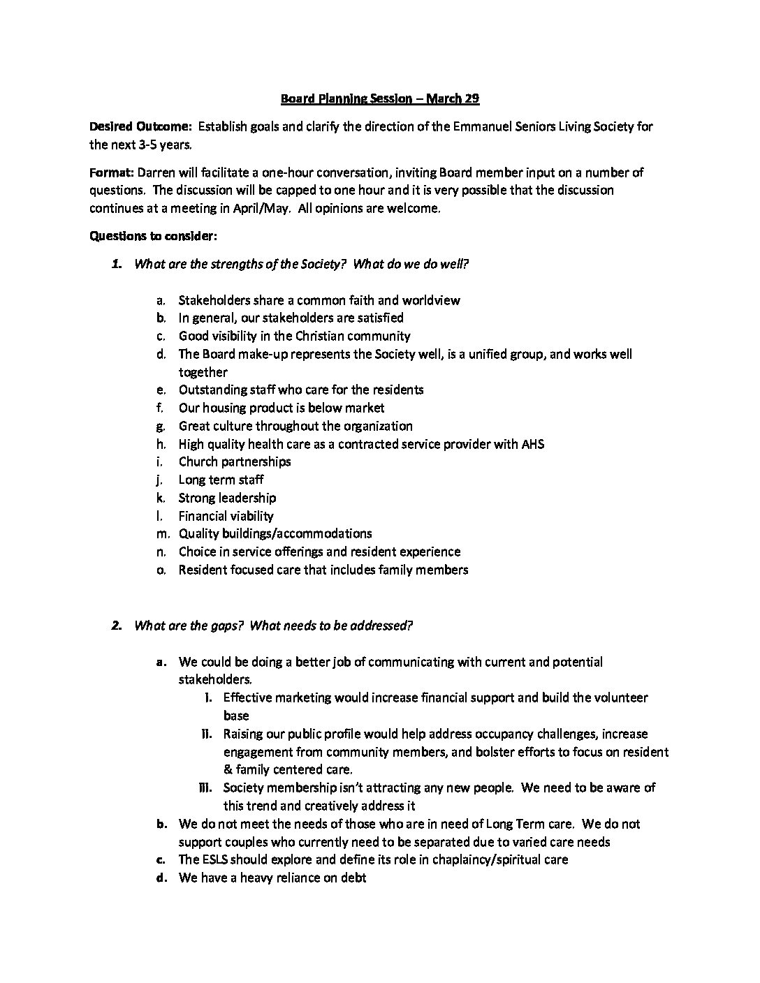 Board Planning Session – In progress