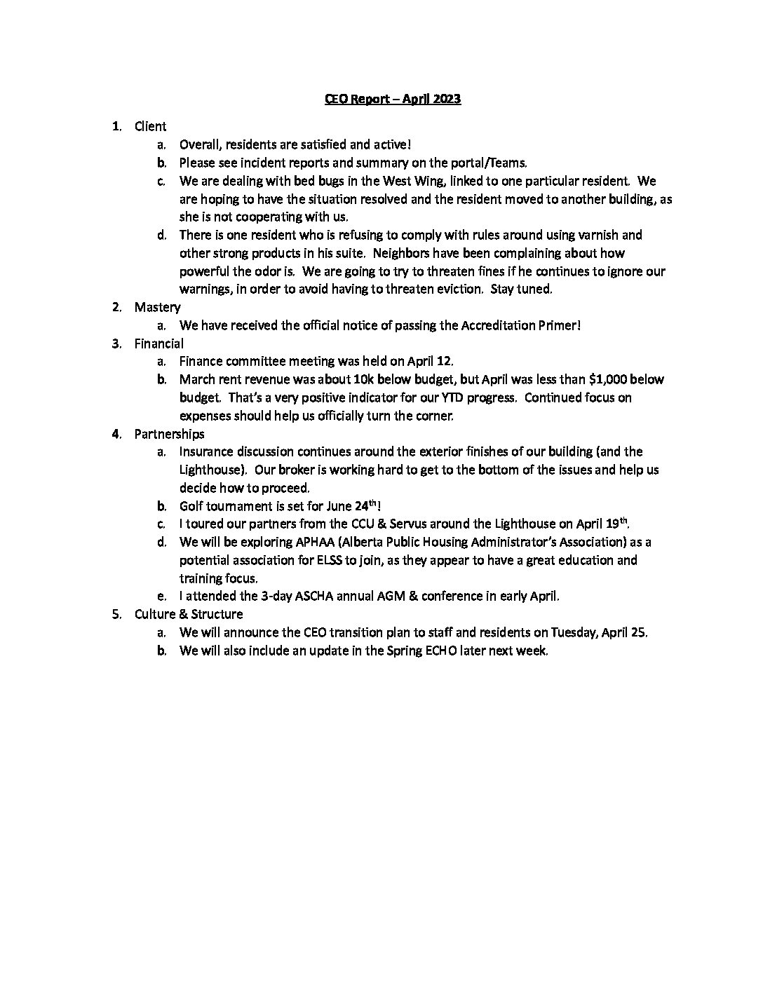 CEO Report – April 2023