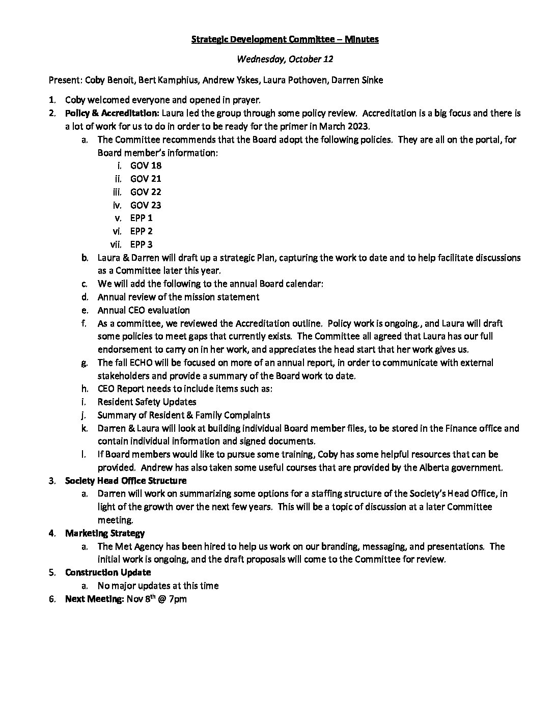 Strategic Development Committee – minutes 10-12-22